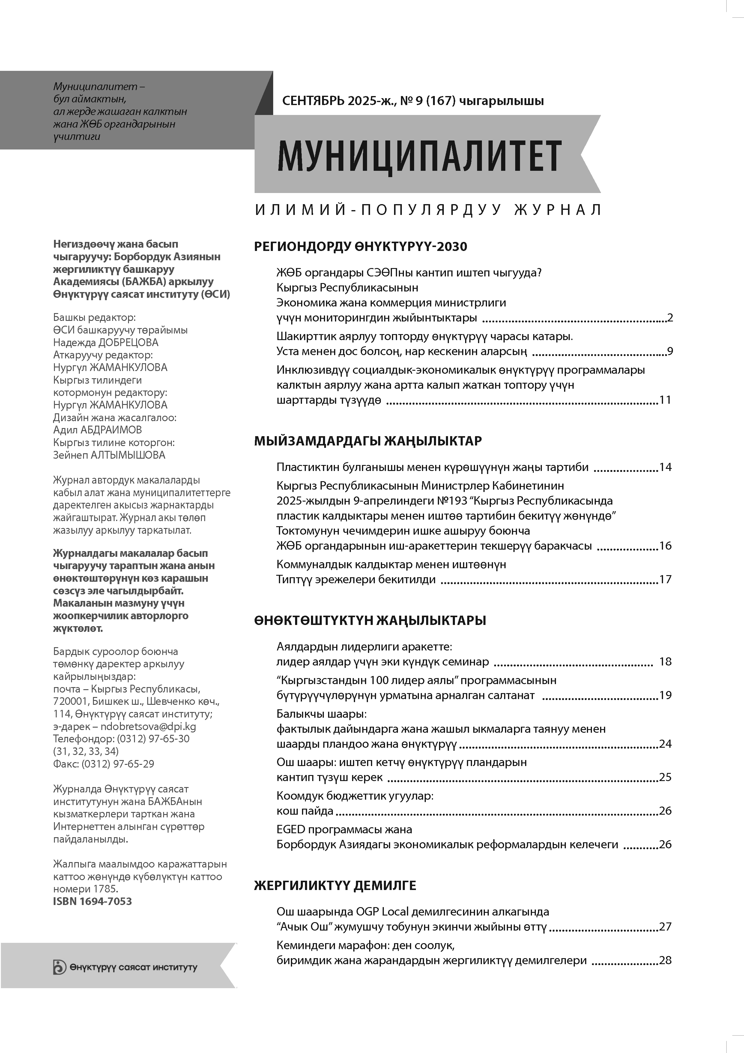 Бул санда: "Региондорду өнүктүрүү-2030", "Жергиликтүү демилге", "Өнөктөштүктүн жаңылыктары", "Мыйзамдардагы жаңылыктар".