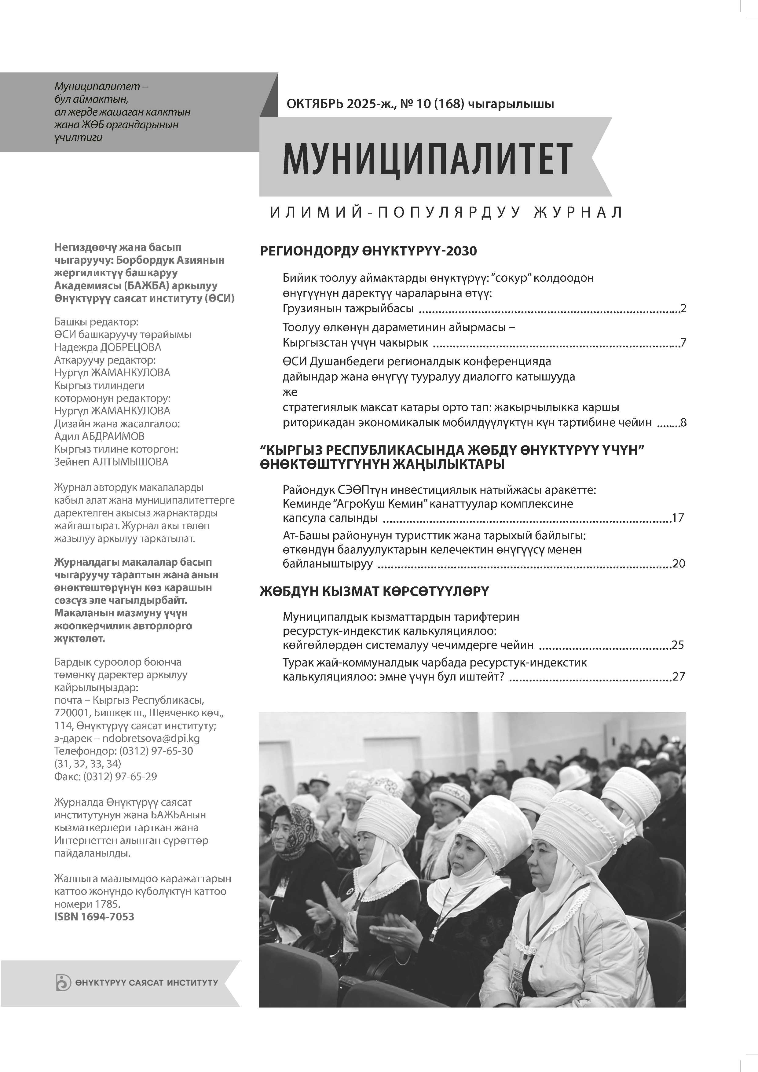 Журналдын толук мазмуну бул шилтеме аркылуу жеткиликтүү: http://municipalitet.kg/ky/archive/full/293.html