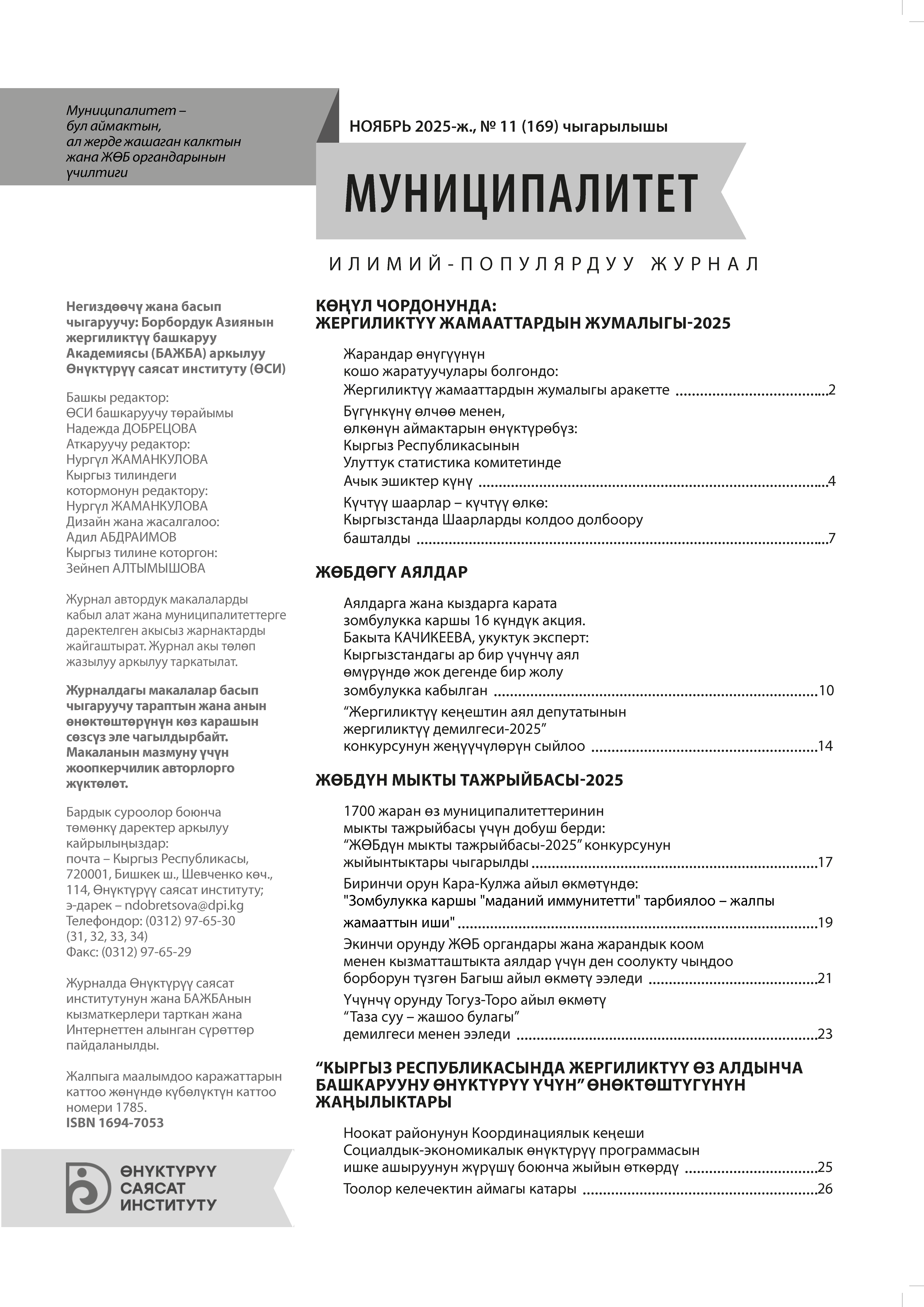 Бул санда: "Көңүл чордонунда: жергиликтүү жамааттардын жумалыгы-2025", "ЖӨБдөгү аялдар", "ЖӨБдүн мыкты тажрыйбасы-2025", "Өнөктөштүктүн жаңылыктары".